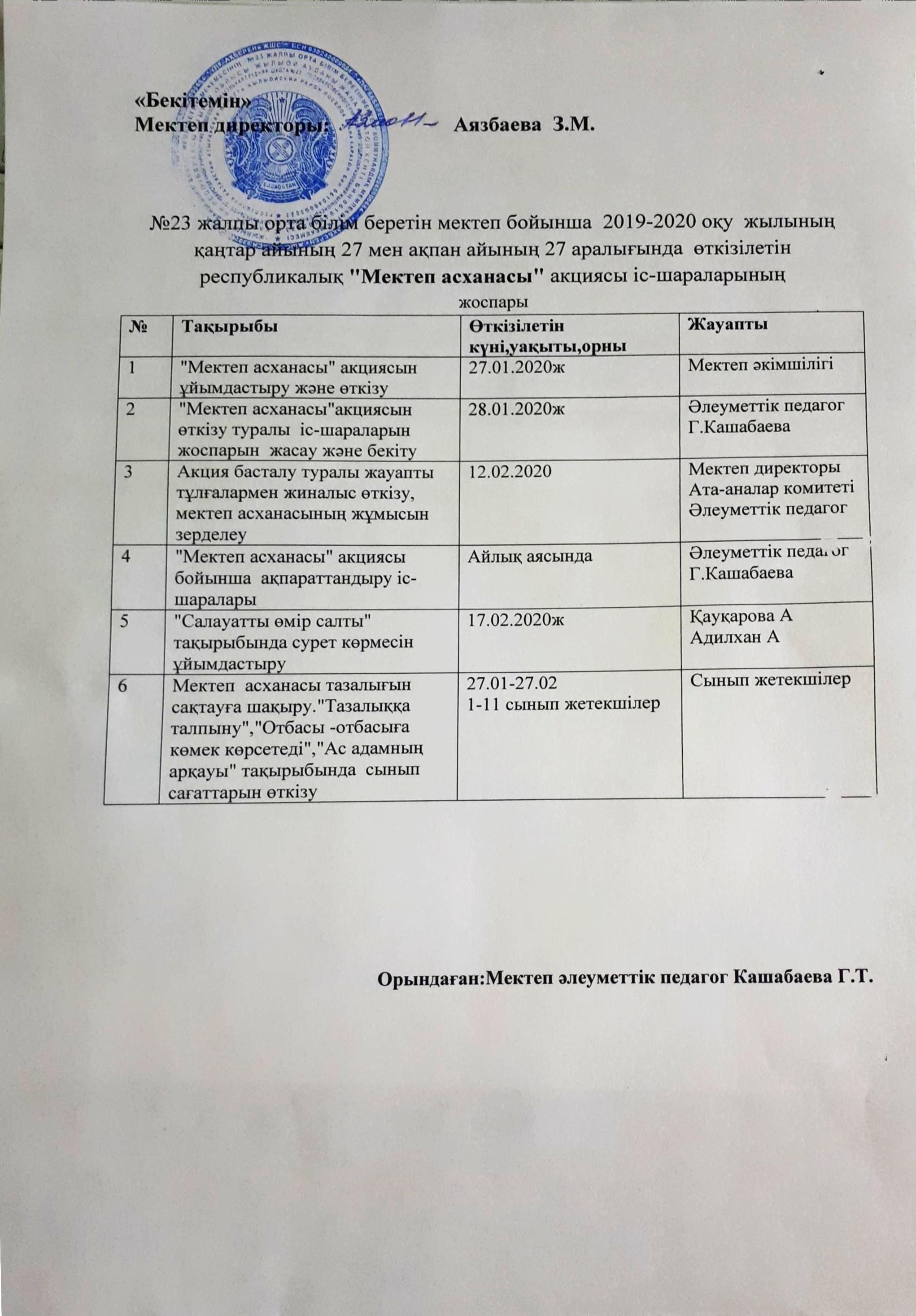 1.З.М.Аязбаева - мектеп директоры,комиссия төрайымы