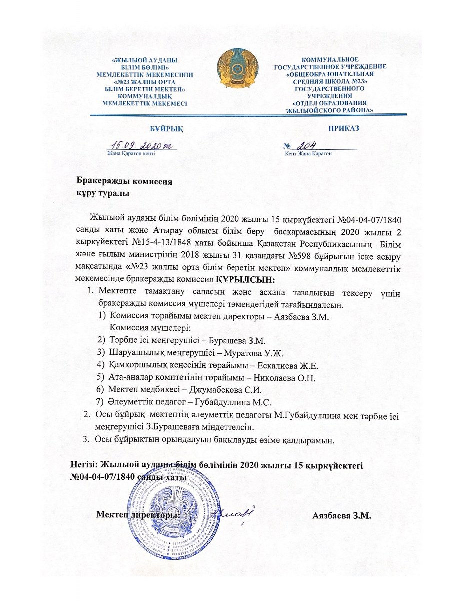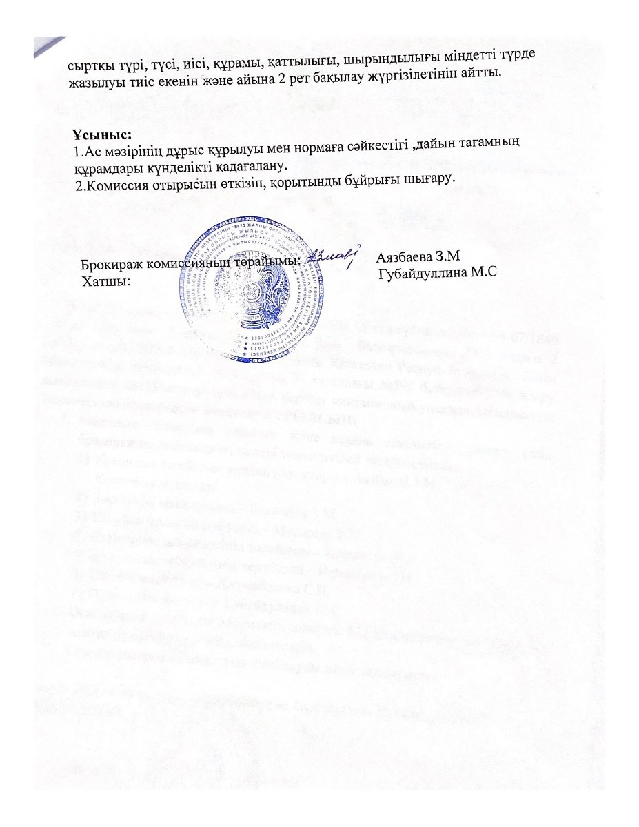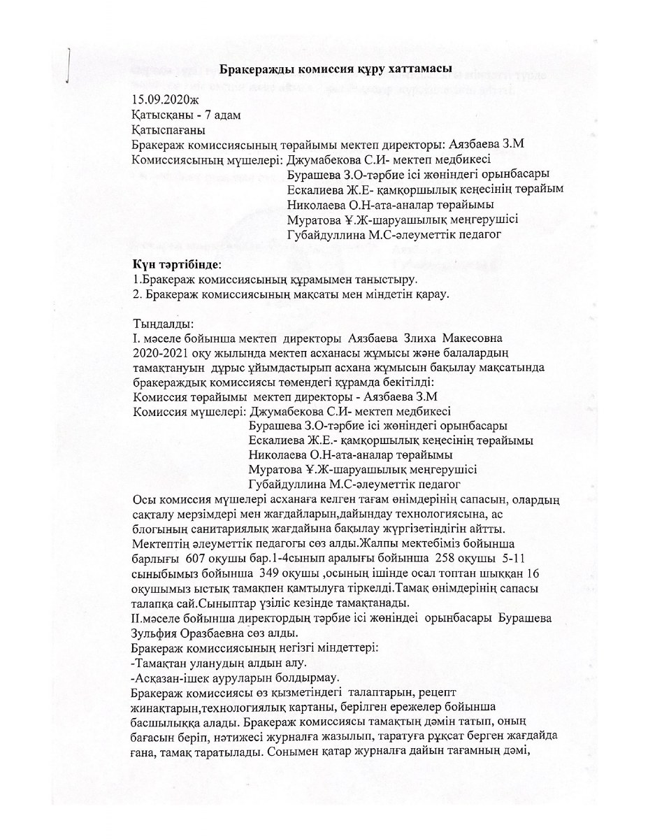Бракеражды комиссия құру туралы